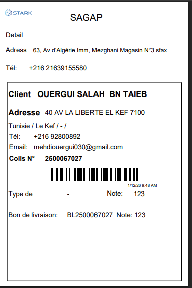 [SAAS: STAP ] Possbilité d'imprimer une étiquette dans le bon de livraison